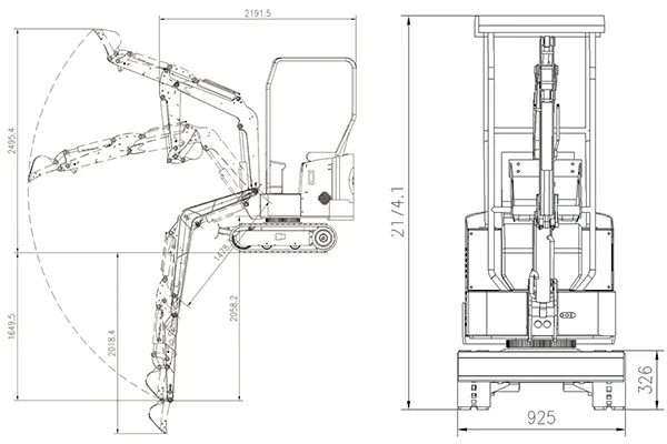Projetada com uma estrutura leve e compacta, a escavadeira pesa apenas 850 kg, exigindo um espaço mínimo para se movimentar. É ideal para uso interno, pomares e viveiros. Alimentada por várias configurações opcionais de motor e um tanque de óleo hidráulico de 13 L, ela suporta operações contínuas de longa duração sem perda de desempenho.